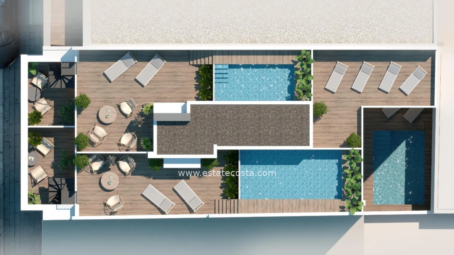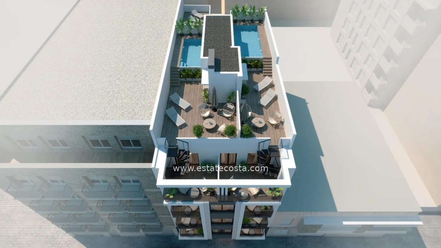 Ta wyjątkowa nowa inwestycja znajduje się w samym centrum Torrevieja, zaledwie 150 m od naturalnych basenów i nadmorskiej promenady oraz tylko 500 m od Playa del Cura. Oferuje nowoczesne apartamenty z 1 lub 2 sypialniami i 1 lub 2 łazienkami, w tym dwa ekskluzywne penthouse'y z prywatnym solarium, grillem i prywatnym basenem. Wszystkie nieruchomości mają otwarty układ, przestronne tarasy, w pełni wyposażoną kuchnię ze sprzętem AGD, kompletne łazienki z meblami, kabinami prysznicowymi i ogrzewaniem podłogowym, a także oświetlenie wewnętrzne.