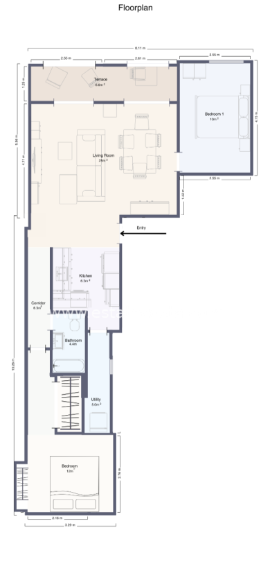 Mieszkanie posiada 2 sypialnie, 1 łazienkę, w pełni wyposażoną kuchnię typu open space oraz jasny, skierowany na południe salon. Z okien roztacza się niczym niezakłócony widok na plac, co zapewnia naturalne światło. W salonie i jednej z sypialni znajduje się klimatyzacja. W pobliżu dostępny jest parking publiczny z możliwością wynajęcia miejsca parkingowego.