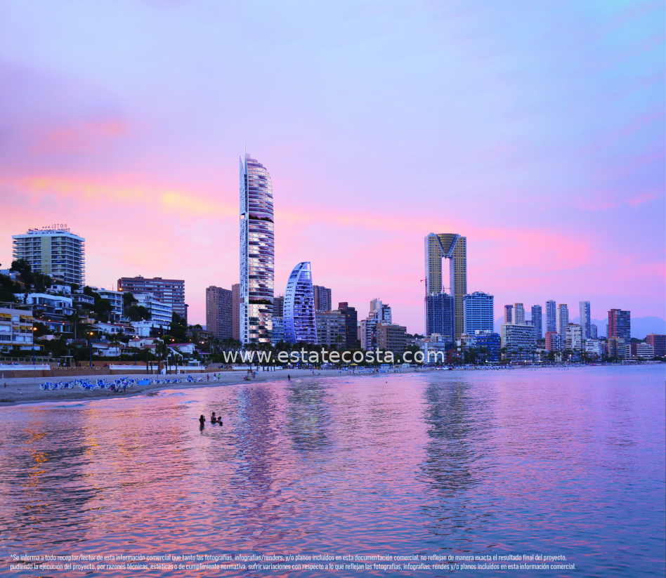 Nowa ikona panoramy Benidormu w najbardziej ekskluzywnej lokalizacji miasta. Ten majestatyczny, 44-piętrowy, 158-metrowy wieżowiec ma unikalny kształt przypominający dwa żagle połączone masztem. Otaczać go będą inspirowane stylem śródziemnomorskim wydmy, harmonizujące z krajobrazem plaży Poniente.