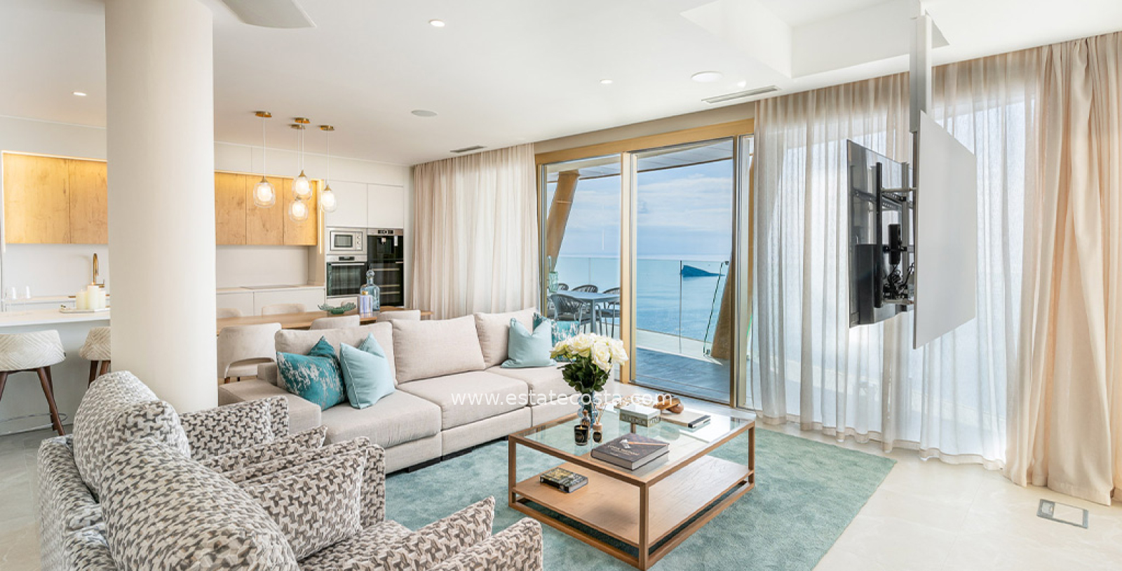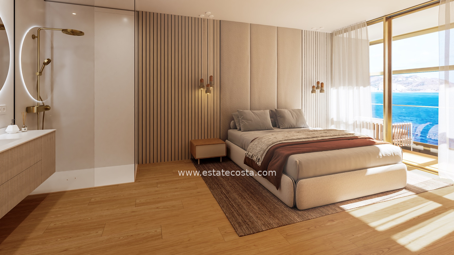 Apartament posiadaja przestronne sypialnie, garderobe, łazienki z ogrzewaniem podłogowym, kuchnie i jadalnie wyposażone zgodnie z najnowszymi standardami i wykonane z najwyższej jakości materiałów. Duże okna od podłogi do sufitu sprawiają, że wnętrze idealnie komponuje się z niepowtarzalnym krajobrazem. Naturalne światło w całym apartamencie i dostęp do wszystkich tarasów z każdego pokoju.