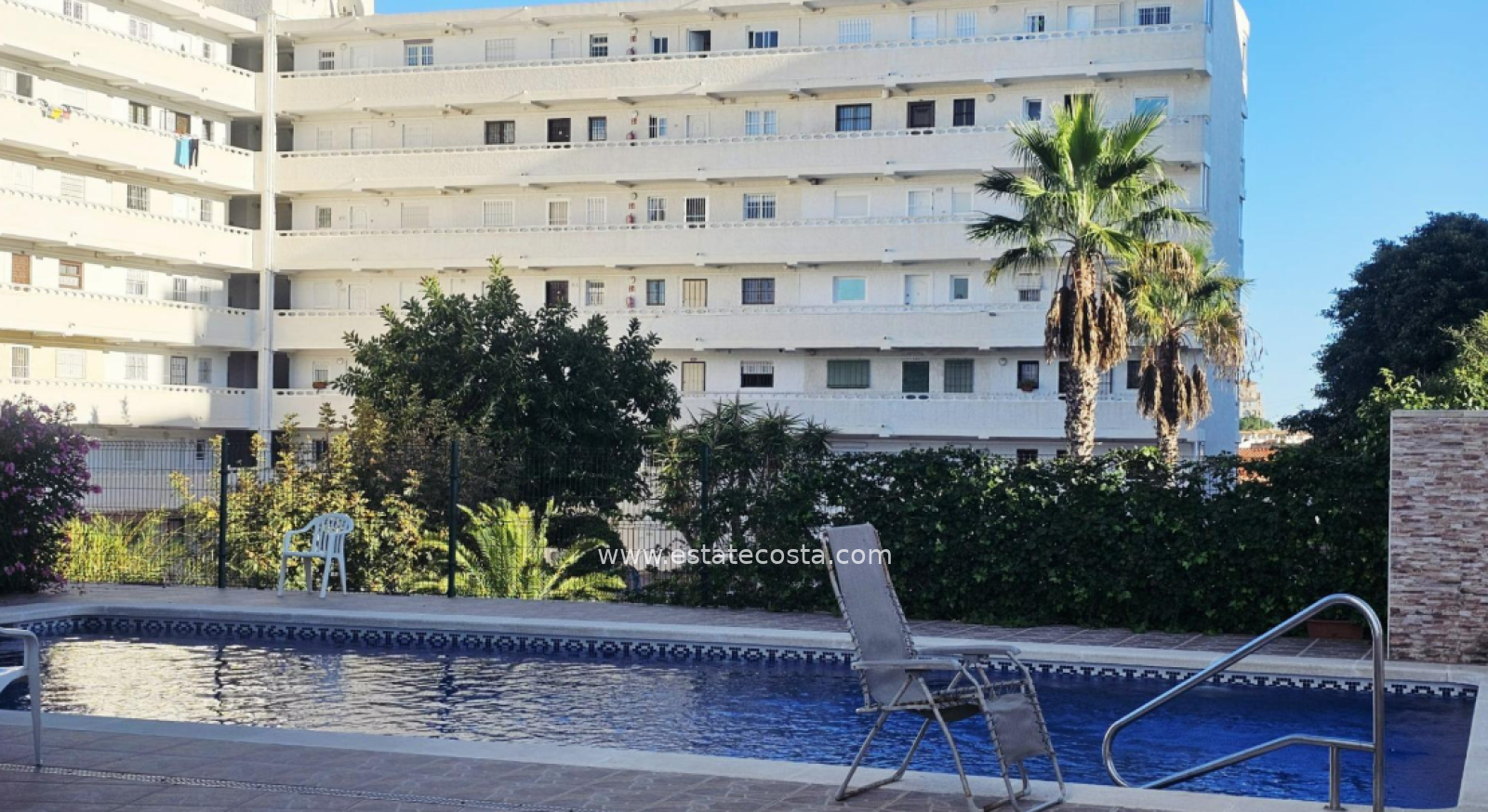 Nieruchomość oferuje w pełni umeblowaną i wyposażoną kuchnię, łazienkę oraz narożny taras z widokiem na morze i basen. Studio jest sprzedawane umeblowane i gotowe do zamieszkania lub jako inwestycja na wakacje lub wynajem. Osiedle dysponuje wspólnym basenem i parkingiem. Mieszkanie znajduje się na 2 piętrze w budynku z windą.