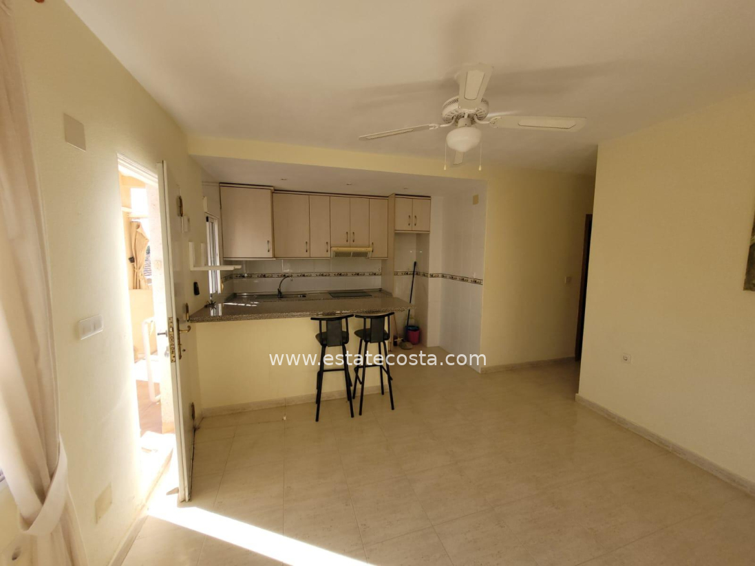 Nieruchomość składa się z 2 sypialni, łazienki oraz salonu połączonego z otwartą kuchnią. Oprócz tarasu na wejściu, bungalow posiada duże prywatne solarium z grillem.