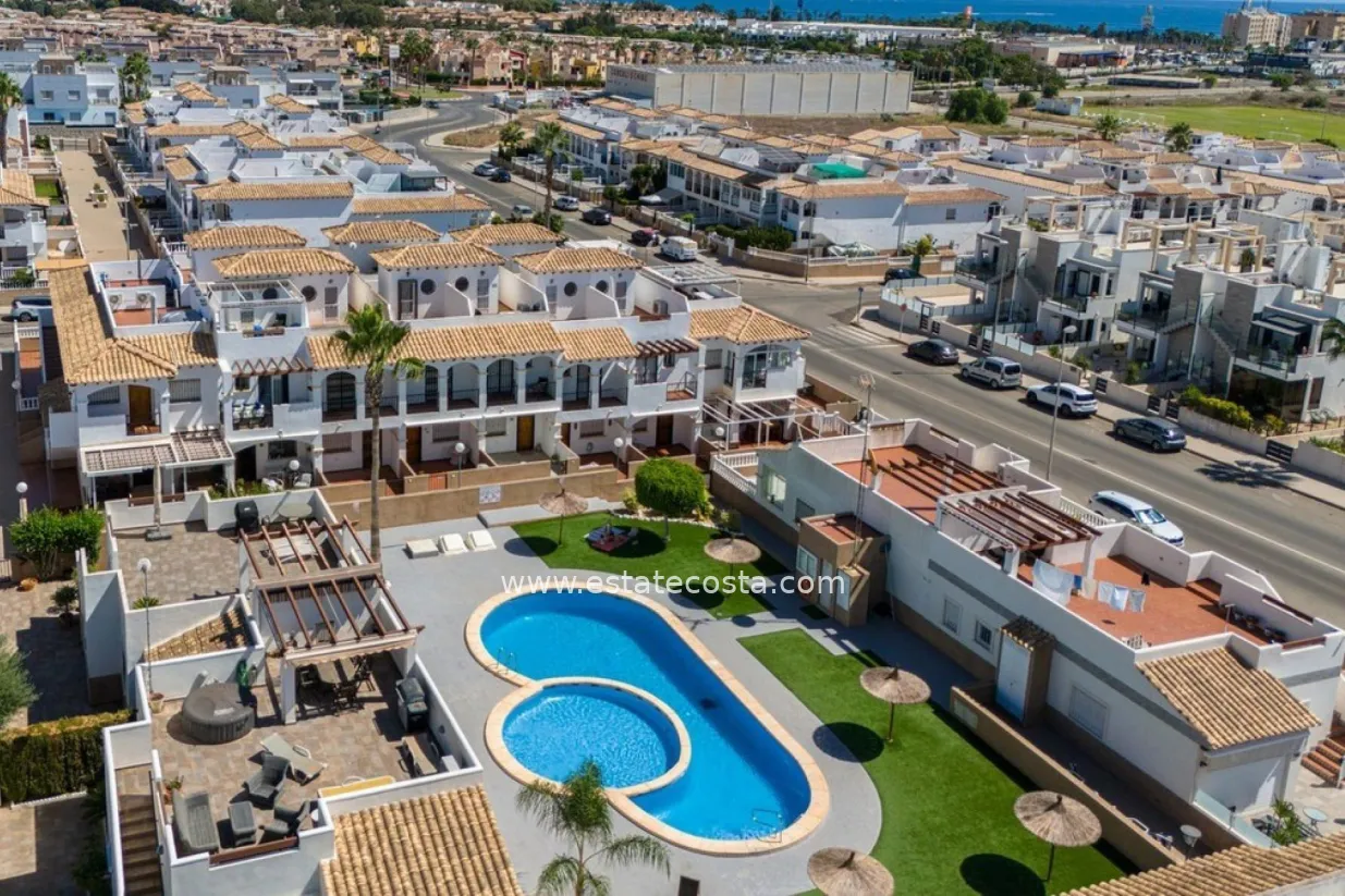 Bungalow dolny położony w ładnym kompleksie mieszkalnym ze wspólnym basenem w dzielnicy Punta Prima.