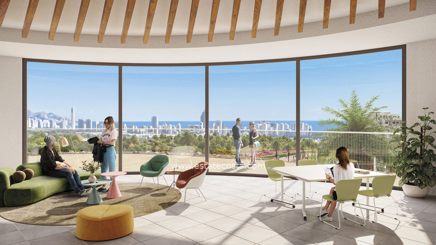 Kompleks znajduje się na wzniesieniu u podnóża góry Puig Campana, co gwarantuje panoramiczne widoki na morze i panoramę pobliskiego Benidormu. Lotnisko w Alicante: Oddalone o ok. 50–56 km (ok. 40 minut autostradą AP-7).