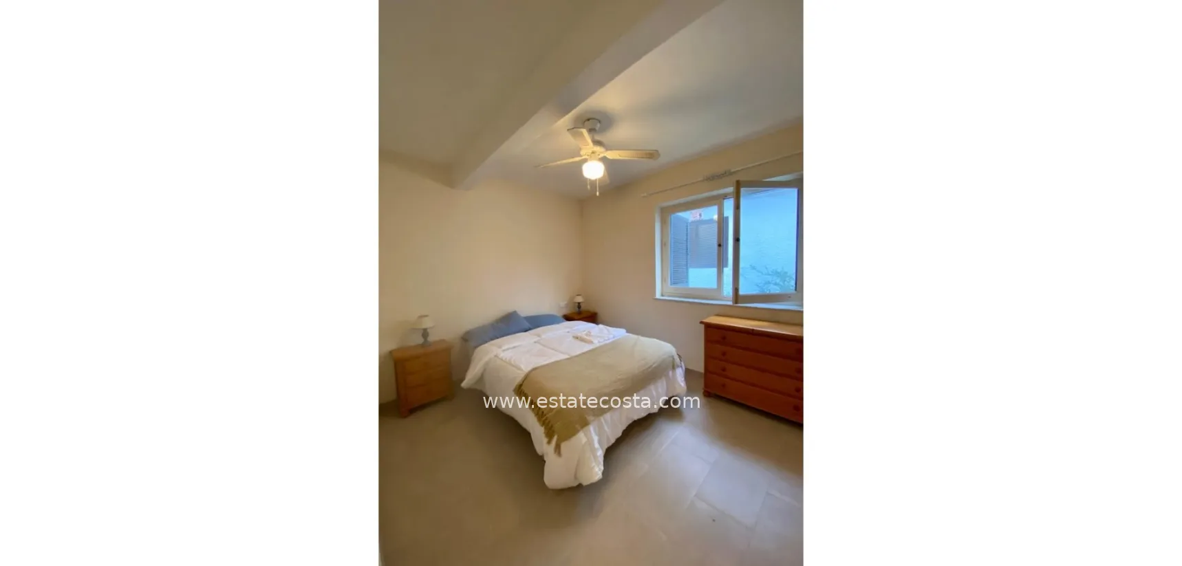 Bungalow oferuje 2 sypialnie i 1 nowoczesną łazienkę, w pełni wyposażoną kuchnię oraz przestronny salon z naturalnym oświetleniem. Niedawno odnowiony, z nowymi oknami, instalacją wodno-kanalizacyjną, łazienką i kuchnią – każdy szczegół został zaprojektowany z myślą o komforcie. Na zewnątrz, można cieszyć się prywatnym ogrodem i słonecznym tarasem z bezpośrednim widokiem na wspólny basen. Prywatne miejsce parkingowe jest wliczone w cenę.