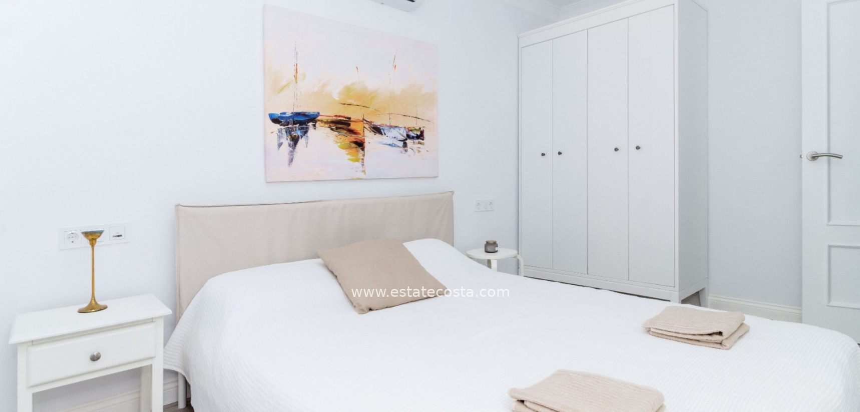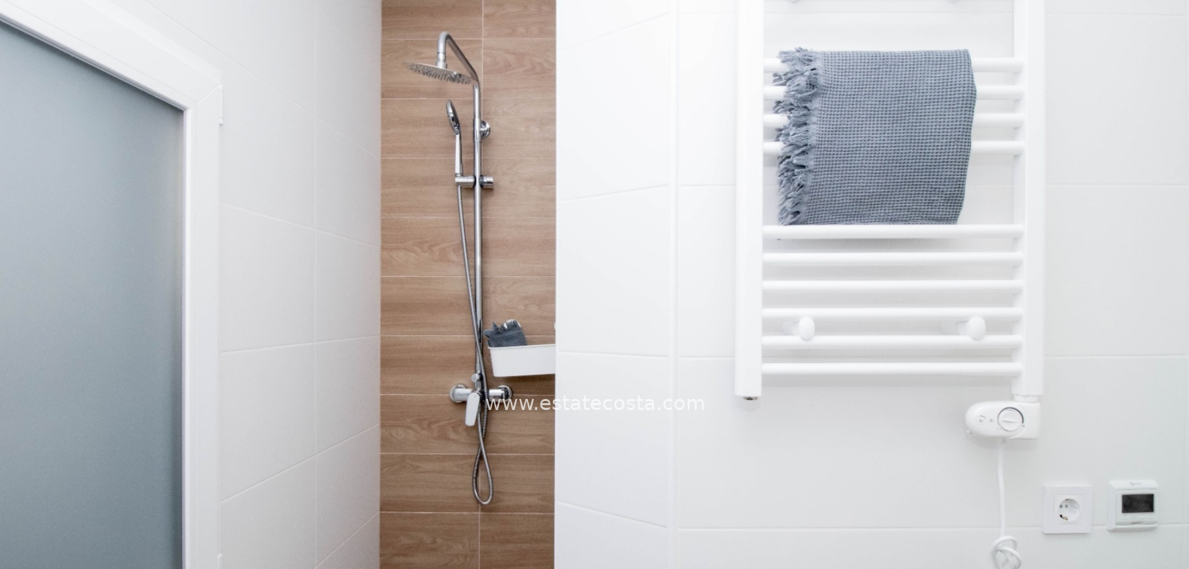 Zapraszamy do tego w pełni odnowionego domu szeregowego, położonego w samym sercu La Zenia. Nieruchomość znajduje się zaledwie 350 metrów od plaży La Zenia i 950 metrów od słynnego centrum handlowego La Zenia Boulevard. Ten dom w stylu hiszpańskim został gruntownie odnowiony z dbałością o wysoki standard jakości i smaku. Wewnątrz znajduje się przestronny salon oraz zupełnie nowa, w pełni wyposażona kuchnia z systemem filtracji wody pitnej. Dom oferuje trzy sypialnie z pięknym widokiem na park oraz trzy łazienki, w tym jedną na dziedzińcu, wraz z pralnią. Wszystkie okna wyposażone są w szyby solarne, co poprawia komfort termiczny w pomieszczeniach. Nieruchomość wyposażona jest w system alarmowy, wzmocnione drzwi wejściowe, klimatyzację, internet i telewizor Smart TV. Na parterze i w łazienkach położono wysokiej jakości podłogi winylowe z ogrzewaniem podłogowym.