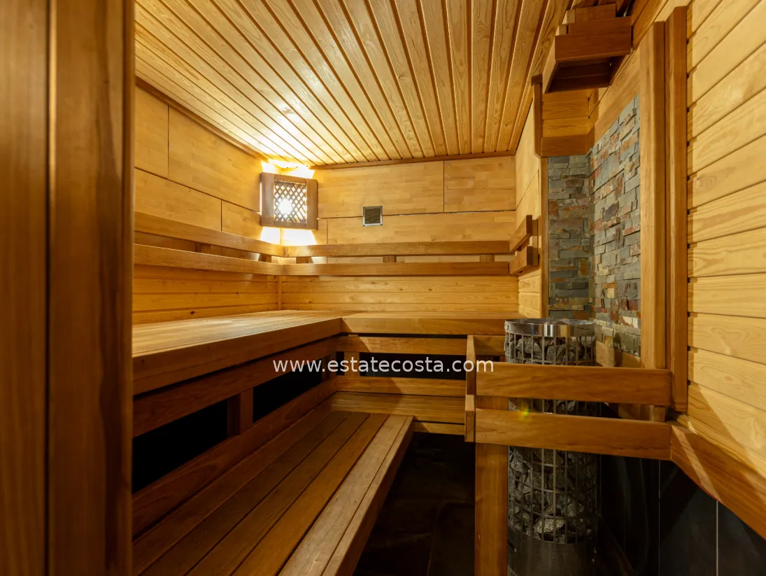 Budynek jest dobrze utrzymany a komfort mieszkania dodatkowo zwiększają wspólny basen i sauna fińska, z których korzystają mieszkańcy. W pobliżu znajdują się wszystkie udogodnienia, od dużych sklepów po restauracje, a plaża jest oddalona o zaledwie 1,5 kilometra.