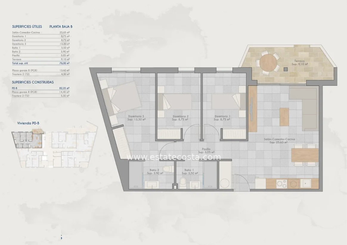 Świetna lokalizacja w Lo Pagan, uroczej nadmorskiej okolicy w San Pedro del Pinatar na pięknym wybrzeżu Costa Calida. Lo Pagan słynie z relaksującej atmosfery nadmorskiej, spokojnych wód Mar Menor i ponad 300 słonecznych dni w roku. Okolica łączy w sobie tradycyjny hiszpański urok z nowoczesnymi udogodnieniami, co czyni ją idealnym miejscem zarówno do stałego zamieszkania, jak i na dom wakacyjny.
