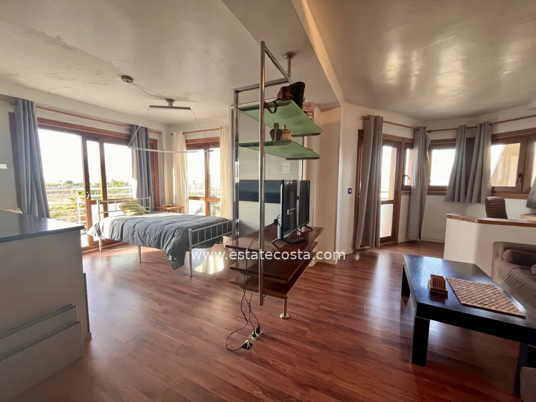 Nieruchomość składa się z 1 sypialni, łazienki z prysznicem, niezależnej kuchni oraz dużej przestrzeni dziennej, z dużym potencjałem. Wyjątkowym atutem mieszkania jest narożny taras z frontalnym widokiem na różowe jezioro i bocznym widokiem na morze. Jest sprzedawane częściowo umeblowane. Mieszkańcy mają dostęp do dużego wspólnego basenu.