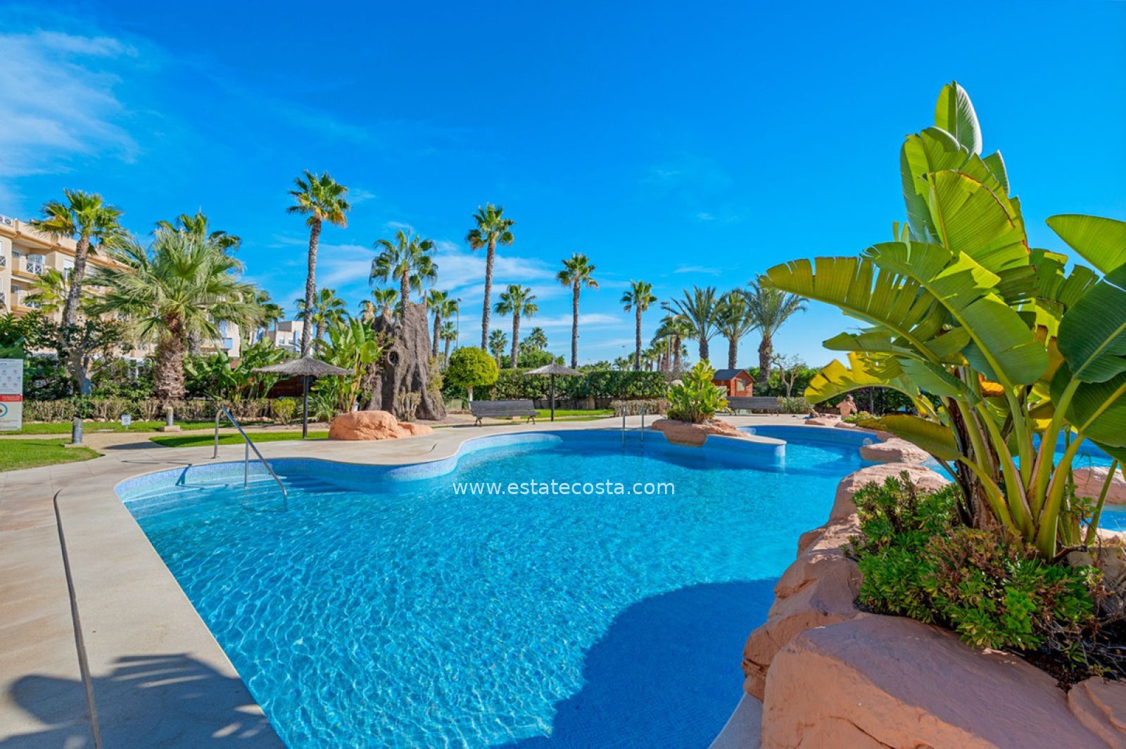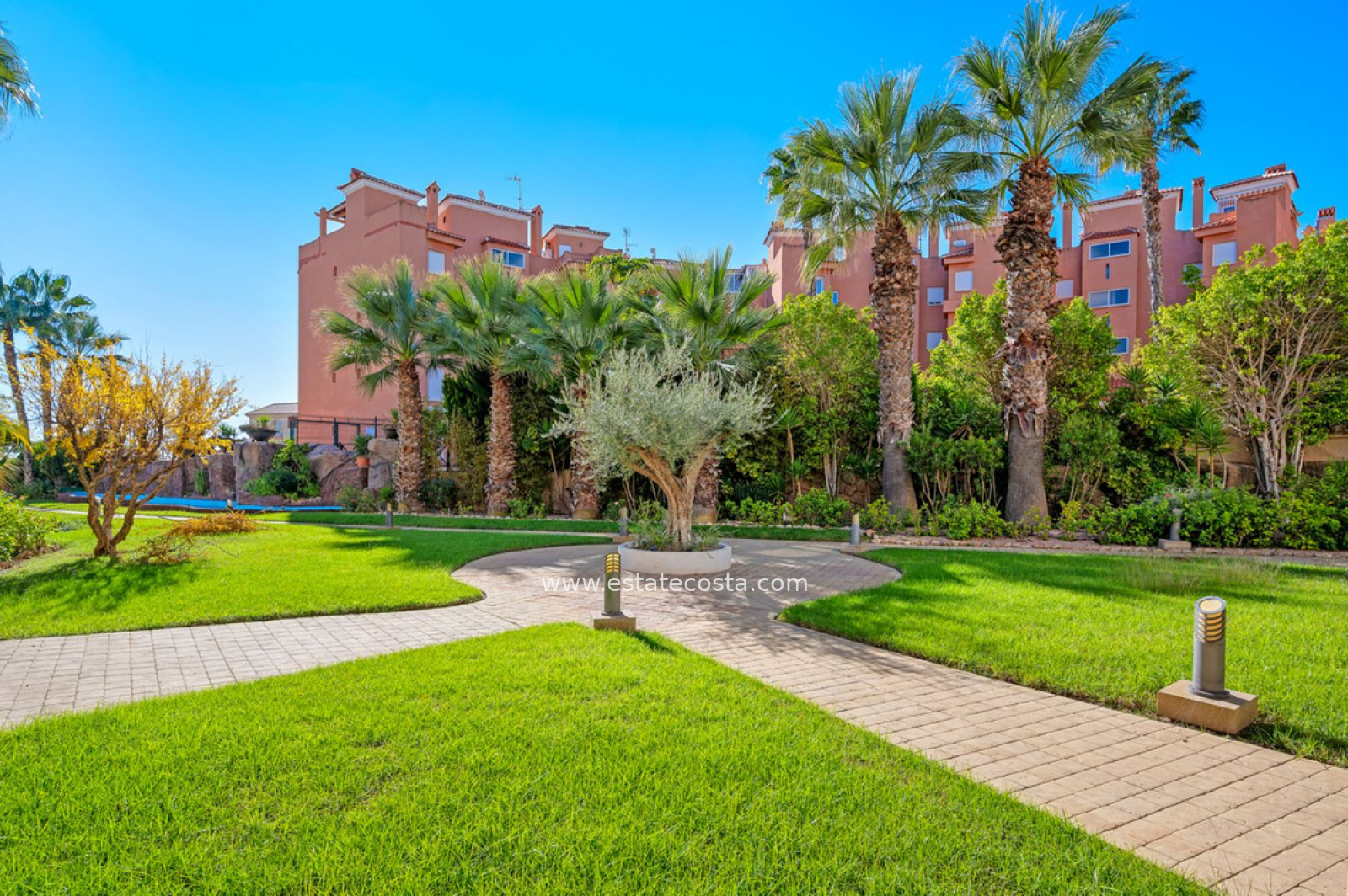 Mieszkańcy mogą korzystać z pięknie utrzymanych wspólnych ogrodów i basenu, a w pobliżu znajduje się wiele sklepów, restauracji i lokalnych udogodnień. Miłośnicy golfa będą zachwyceni, gdy odkryją kilka prestiżowych pól golfowych w odległości zaledwie 10 minut jazdy samochodem.