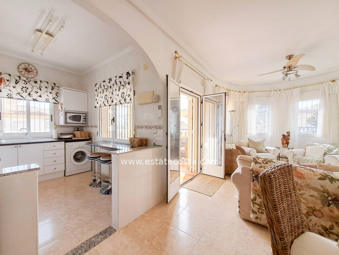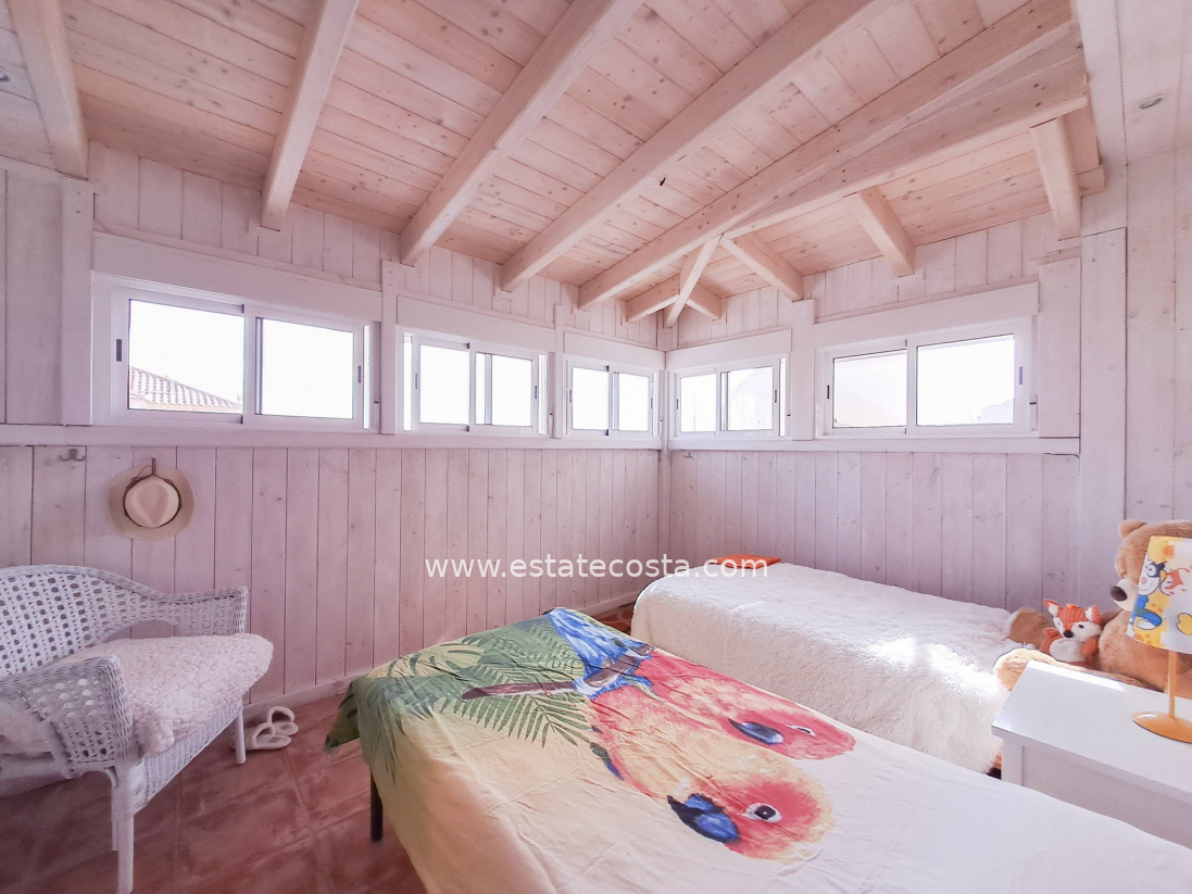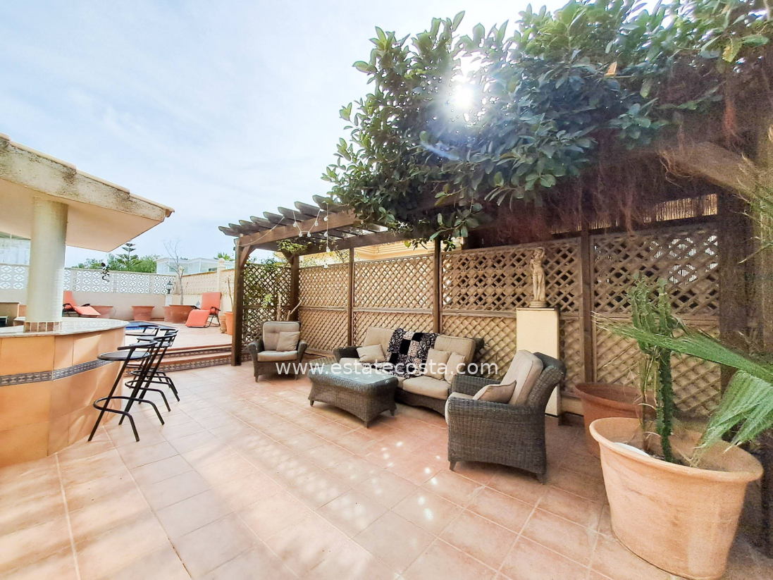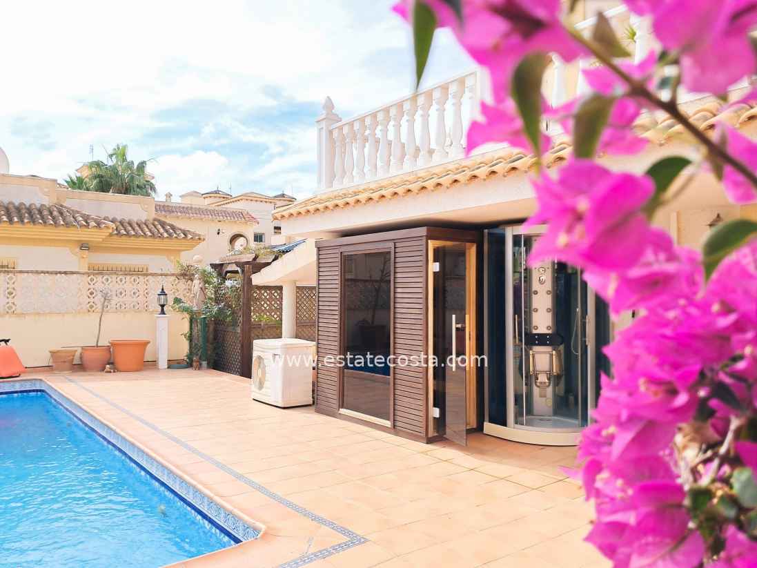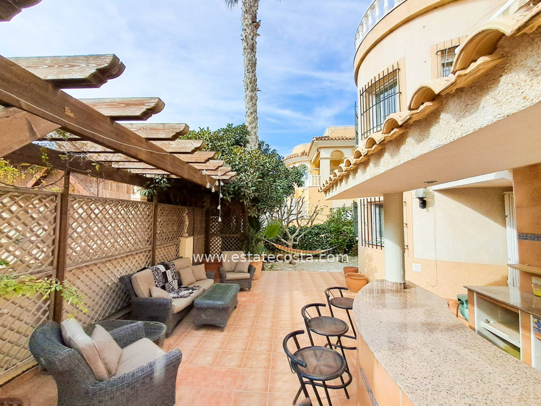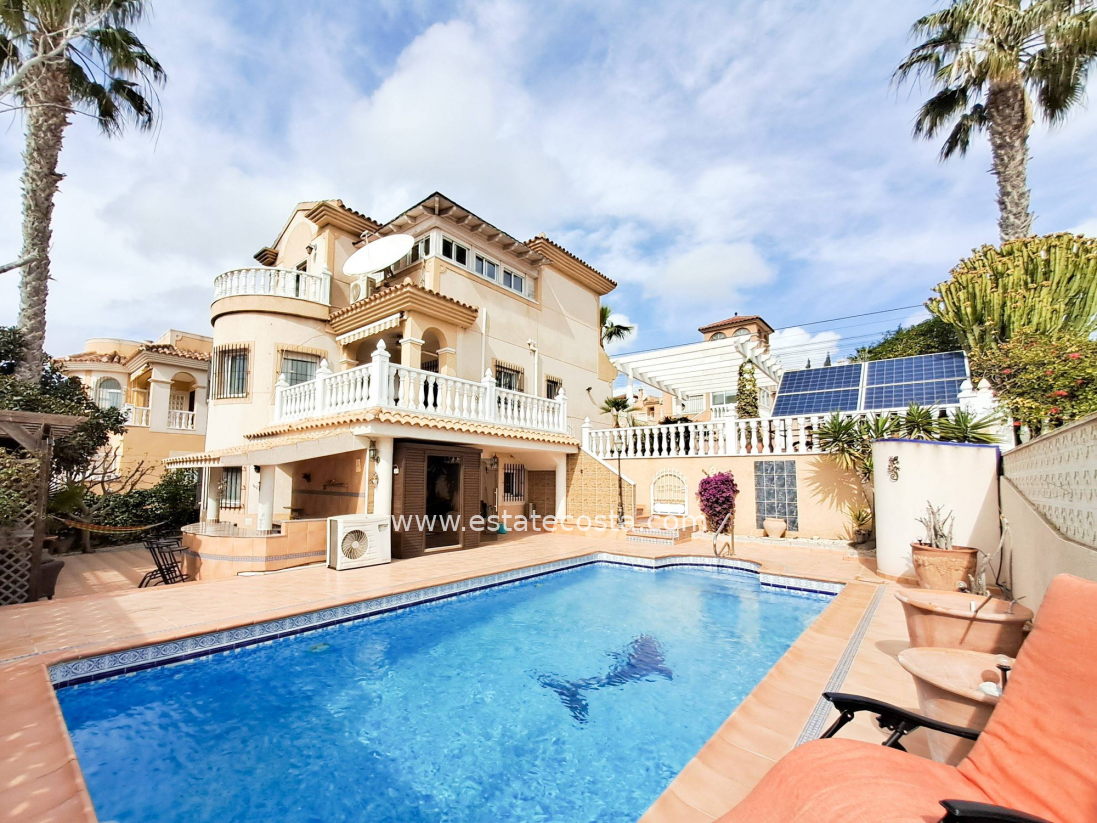 Ten wyjątkowy dom położony jest w dzielnicy Las Filipinas w Orihuela Costa, około 4 km od plaży. Dom ma praktyczny układ z trzema sypialniami dwuosobowymi i dwiema sypialniami jednoosobowymi oraz trzema łazienkami, dzięki czemu idealnie nadaje się dla rodziny lub jako przestronny apartament wakacyjny. Nieruchomość jest w dobrym stanie i zwrócona jest w stronę południową, zapewniając dużą ilość naturalnego światła. Oferuje również przestrzeń do wypoczynku na świeżym powietrzu, na balkonie, w sporym ogrodzie i przede wszystkim w prywatnym basenie. Dodatkowo dom posiada przestrzeń do przechowywania w postaci piwnicy i pomieszczenia magazynowego. Znajduje się na obszarze dobrze rozwiniętej urbanizacji, która zapewnia bliskość centrów handlowych i pól golfowych oraz wszelkich usług.
