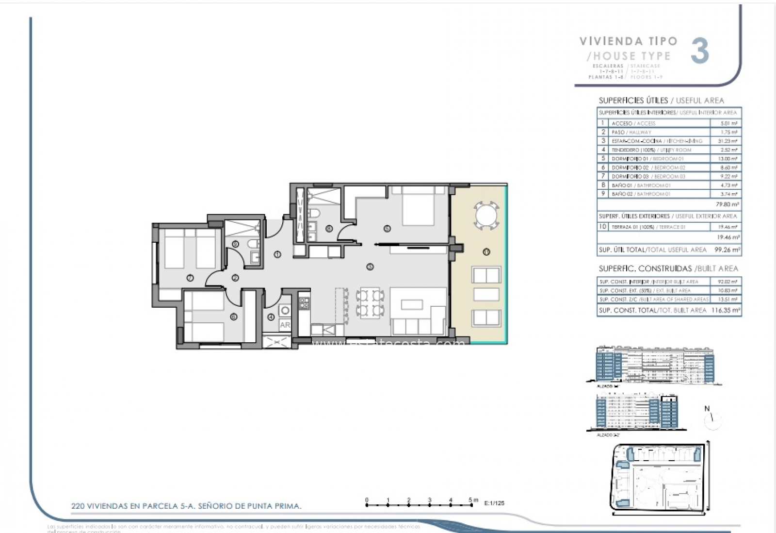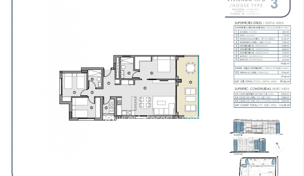 Dzięki uprzywilejowanej orientacji na wschód, możesz podziwiać widoki na morze, plażę i baseny oraz ogrody urbanizacji.